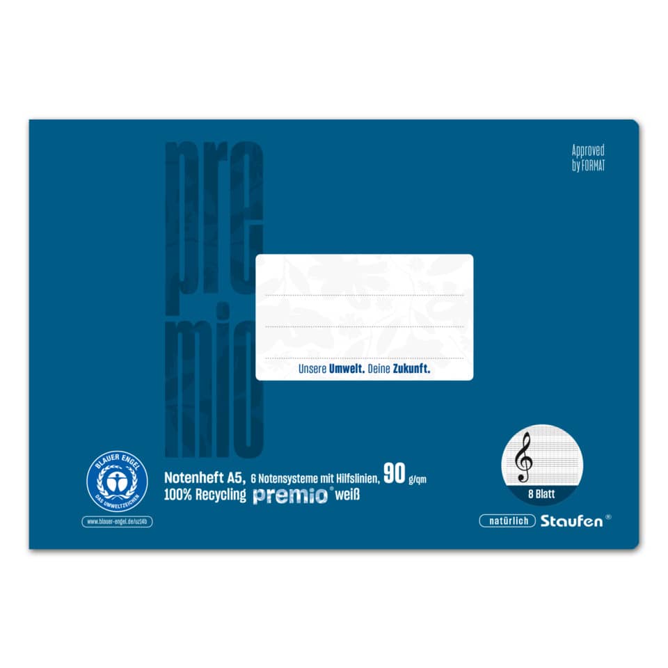 Qualität mit dem Umwelt-Extra! Das exklusive premio® Sortiment wird aus 100% recycletem Papier unter den strengen Auflagen des Blauen Engels und des EU Ecolabels hergestellt. Die erstklassige Beschaffenheit und das hochweiße 90 Gramm Papier sorgen für ein angenehmes Schreibgefühl und eine herausragende Opazität. Geschützt wird jedes Produkt durch Deckblätter bzw. Umschläge mit hoher Grammatur, im eleganten Design der modernen permio® Farbenwelt. premio® ist DER umweltfreundliche Begleiter in Schule und Büro.