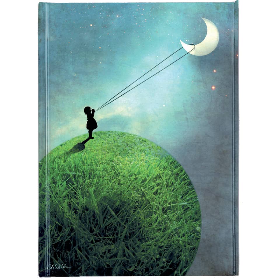 176 cremefarbene Seiten, Magnetverschluss, 2 Lesezeichen, Einband mit Kunstmotiv geprägt. Motiv: Chasing the moon.