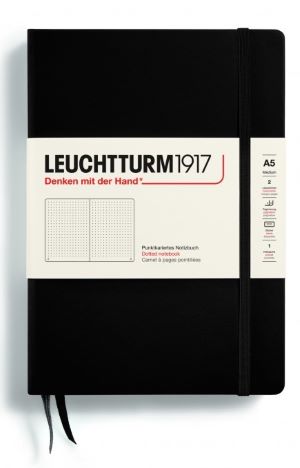 Notizbuch Medium (A5) Hardcover 251 nummerierte Seiten, Schwarz, Dotted