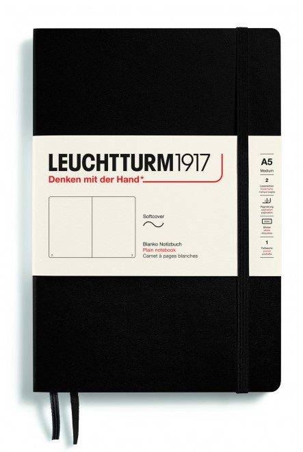 Notizbuch Medium (A5) Softcover 123 nummerierte Seiten, Schwarz, Blanko