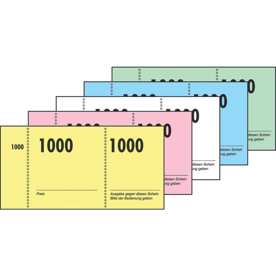 Praktische Nummernblocks für viele Gelegenheiten – unentbehrlich z. B. als Garderobennummer, Kuchenblock oder für Verlosungen! Sortiert in 5 verschiedenen Farben. Durchgehende Nummerierung von 1-1000, jeder Block enthält je 100 Nummern. Dank der hervorragenden Schnitt-Steg-Perforationen lassen sich jedes Blatt und jeder Abriss schnell und sauber abtrennen.