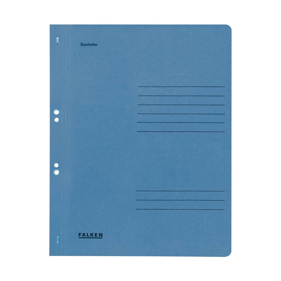 Ösenhefter A4 1/1 Vorderdeckel. Art der Heftung: kaufmännische- und Behördenheftung. Ausstattung: ganz, Abheftvorrichtung vorhanden, Organisationsaufdruck vorhanden. Werkstoff: Manilakarton. Papiergewicht bzw Stärke: 250 g/qm. Verwendung für Papierformate: A4. Größe (B x H): 240 x 305 mm. Farbe: blau. Blauer Engel.