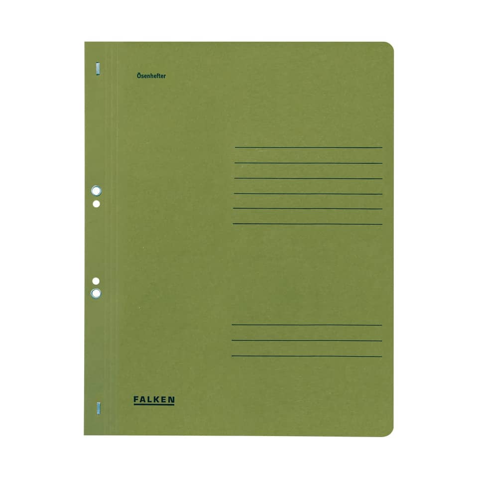 Ösenhefter A4 1/1 Vorderdeckel. Art der Heftung: kaufmännische- und Behördenheftung. Ausstattung: ganz, Abheftvorrichtung vorhanden, Organisationsaufdruck vorhanden. Werkstoff: Manilakarton. Papiergewicht bzw Stärke: 250 g/qm. Verwendung für Papierformate: A4. Größe (B x H): 240 x 305 mm. Farbe: grün. Blauer Engel.