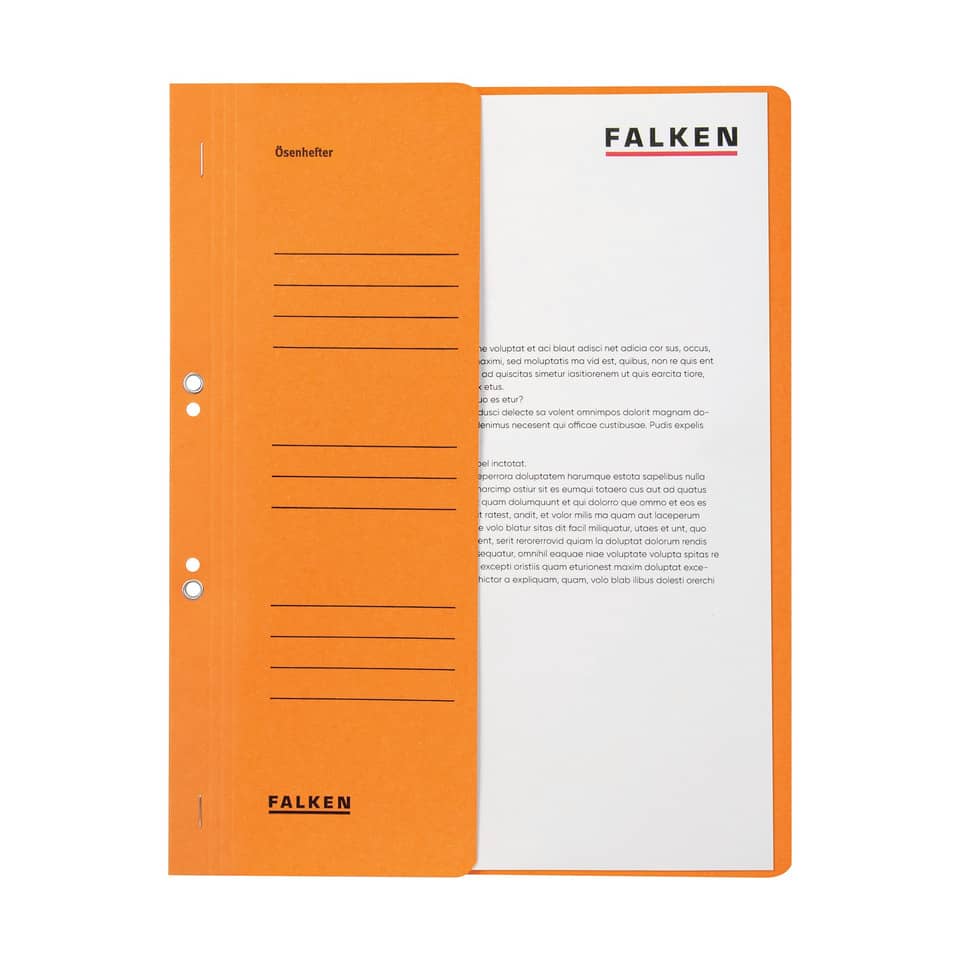 Ösenhefter A4 1/2 Vorderdeckel kfm. Heftung orange. Art der Heftung: kaufmännische Heftung. Ausstattung: halb, Abheftvorrichtung vorhanden, Organisationsaufdruck vorhanden. Werkstoff: Manilakarton. Papiergewicht bzw Stärke: 250 g/qm. Verwendung für Papierformate: A4. Größe (B x H): 240 x 305 mm. Farbe: Orange. Blauer Engel.