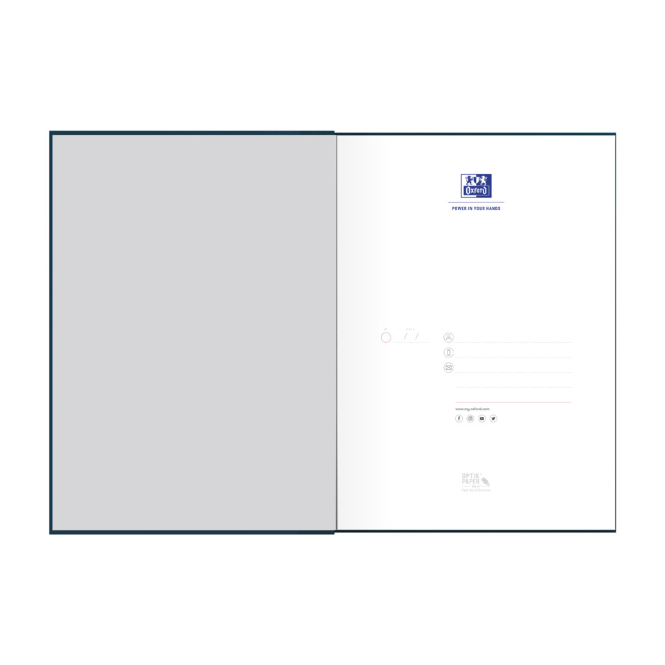 Oxford Black & Blue mit stabilen Deckel in dezenten, edlen Farben. Buch mit 96 Blatt. Inklusive eines Lesezeichen-Lineal mit Sammelmotiv. Das seidenglatte Optik Paper ist auch auf der Rückseite beschreibbar, ohne das die Tinte durchschlägt.