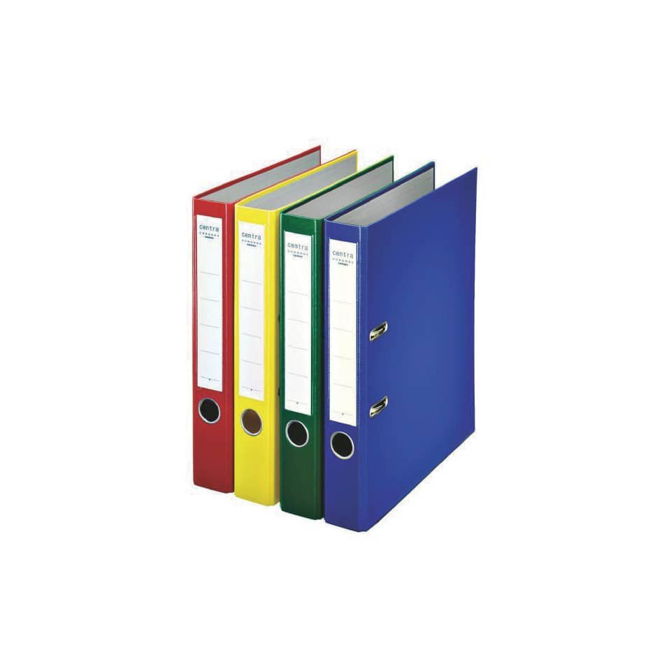 Ordner Plastik Chromos, mit Hebelmechnik · mit Schlitzen, mit Griffloch, mit Kantenschutz, mit Sichttasche am Rücken und auswechselbarem Rückenschild · Material: Einband mit umweltschonender Polypropylen-Folie kaschiert, innen Polyethylen-beschichtetes, graues Papier · Format: für A4, 317 x 285 mm, Rückenbreite: 52 mm · Farbe: sortiert