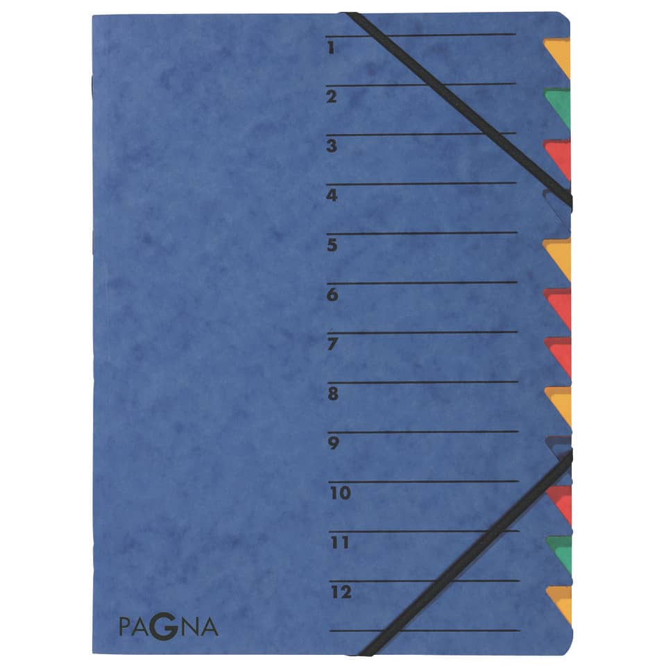 Ordnungsmappe Easy mit 12 Fächern für Dokumente im Format A4. Strapazierfähigem Pressspan mit schwarzem Eckspanngummi. Buntes Griffregister für schnellen Zugriff auf Unterlagen. Aufdruck 1-12 auf dem Deckel, individuell beschriftbar.