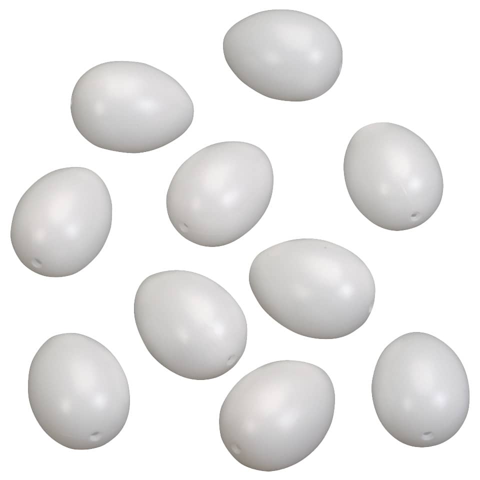 Kunststoffeier, 60 x 45 mm, weiß, 10 St/Bt. mit Acryl- oder Lackfarben bemalbar, harte Qualität.