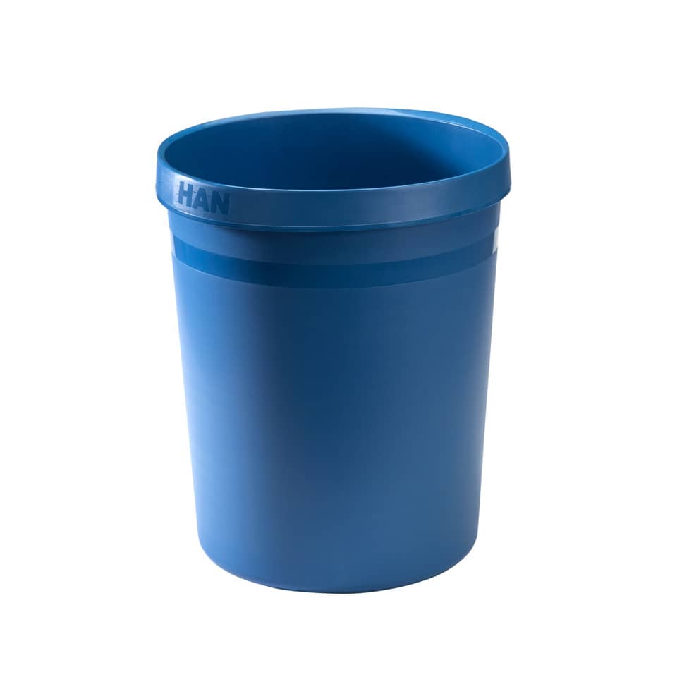 Papierkorb GRIP KARMA, 18 Liter. Der klassische Papierkorb in zeitgemäßem Design. Für das HAN KARMA-Programm werden Post Consumer Materialien (bereits benutzte Kunststoffprodukte) verarbeitet. Der umlaufende ergonomische Griffrand mit 2 praktischen Griffmulden sorgt für ein einfaches Tragen und sicheres Anbringen von Müllsäcken. Ideal für Büro und Privatbereich. Standfest und stabil. Die seidenmatte Außenoberfläche gilt als unempfindlich gegen Schmutzeinwirkungen. Dank der glatten Innenoberfläche ist der Papierkorb besonders reinigungsfreundlich. Fassungsvermögen: 18 Liter. Made in Germany. Durchmesser (O x U x H): 312 x 237 x 350 mm. Material: 80-100%. Recyclingmaterial. Farbe: öko-balu.