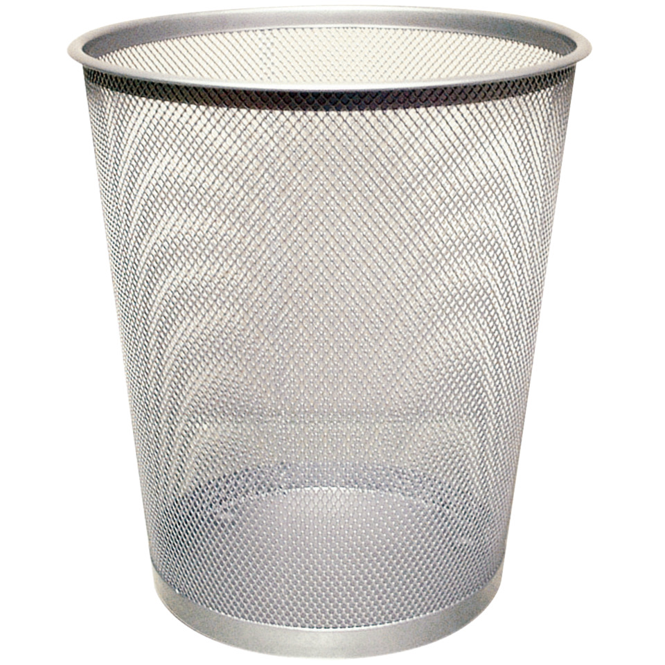 Papierkorb aus Metalldraht, Höhe 34,5 cm, Durchmesser oben 29,5 cm, Durchmesser unten 24,0 cm. Fassungsvermögen: 19 Liter.
