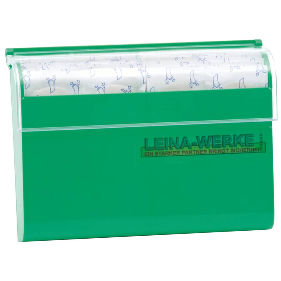 Praktischer Pflasterspender aus Kunststoff zum Befestigen an der Wand. Mit 50 elastischen und 50 wasserfesten Pflastern 1,9 cm x 7,2 cm, hygienisch einzeln verpackt. Pflaster von oben zu entnehmen, leicht nachfüllbar. Größe: 160 x 120 x 25 mm.