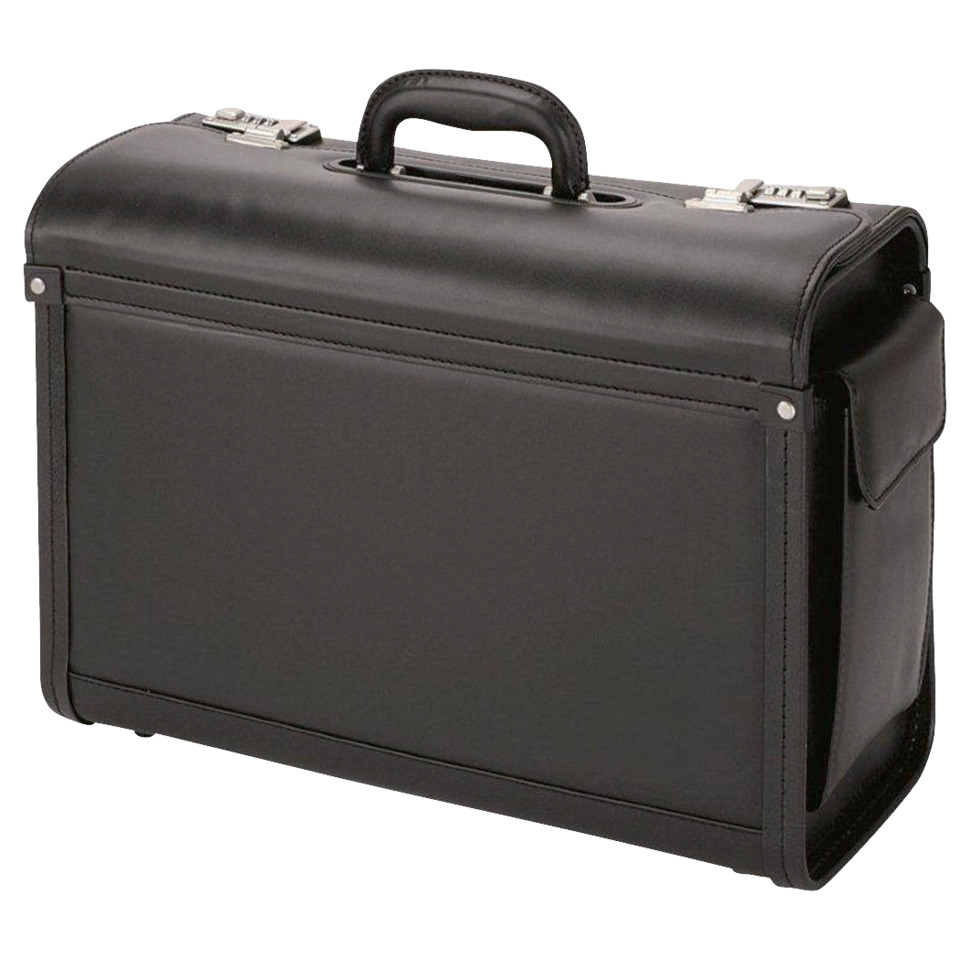 Pilotenkoffer GENOVA Großes Staufach, zwei Zahlenkombinationsschlösser, Reißverschlussetui sowie drei Stiftschlaufen im Deckel, eine Seitentasche. Außenmaß: ca. 45,5 x 34 x 20 cm, Innenmaß: ca. 42 x 31 x 19 cm.