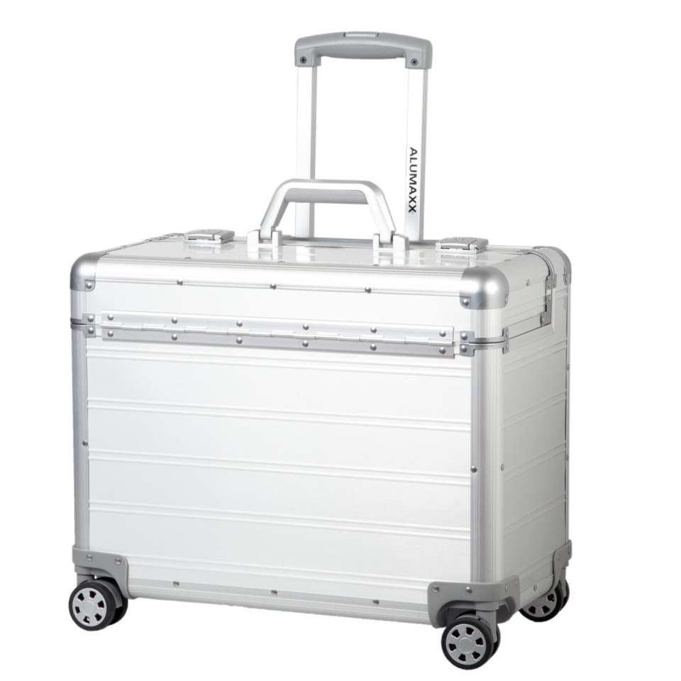 Edles Aluminium, vier 360° Leichtlaufrollen, integriertes arretierbares, Teleskoptrolleysystem, ergonomischer Tragegriff, verstärkte Kanten, sicheres Schlosssystem mit Zweifachschließung und Öffnungsautomatik, herausnehmbares strukturiertes Inlay, acht Visitenkartenfächer, zwei SD Kartenfächer, Ladekabelfach, zwei Stiftschlaufen, Netztasche, Handytasche, Tabletfach, zwei herausnehmbare Organizertaschen. Im Deckel vier Visitenkartenfächer, zwei SD Kartenfächer, Netztasche. Inlay: Laptop-/Tabletfach, Smartphone Hülle, zwei Stifteschlaufen, acht Visiten-/Kreditkartenfächer, zwei SD-Karten Fächer, Netzfach und Einsteckfach für USB-Sticks und Kabel, etc. Trolleyhöhe ca. 103 cm. Außenmaße (B x H x T): 470 x 360 x 250 mm, Innenmaße (B x H x T): 450 x 350 x 230 mm. Innenmaße (B x H x T) Laptopfach ca. 330 x 280 x 50 mm.