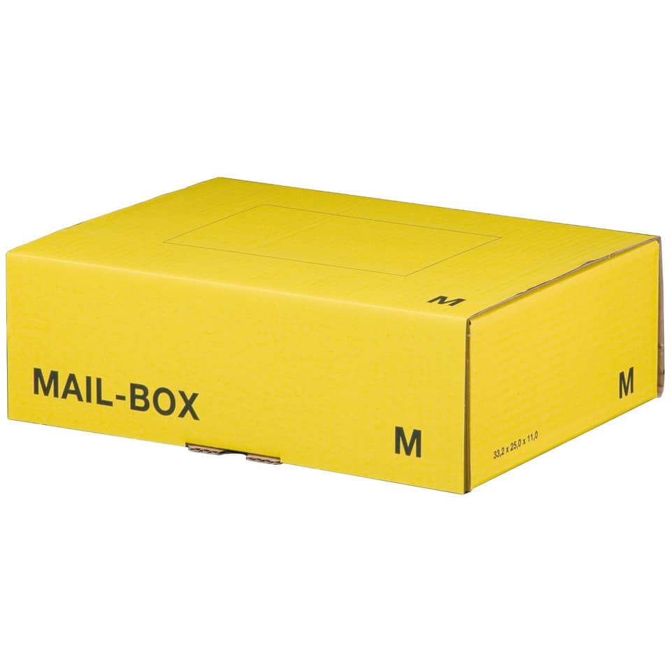Die Box entspricht der Postnorm. Schnell und leicht aufzurichten. Doppelsteckverschluss mit Verriegelung spart Klebeband. Geschlossener Boden. Farbe gelb. Lieferung flachliegend.