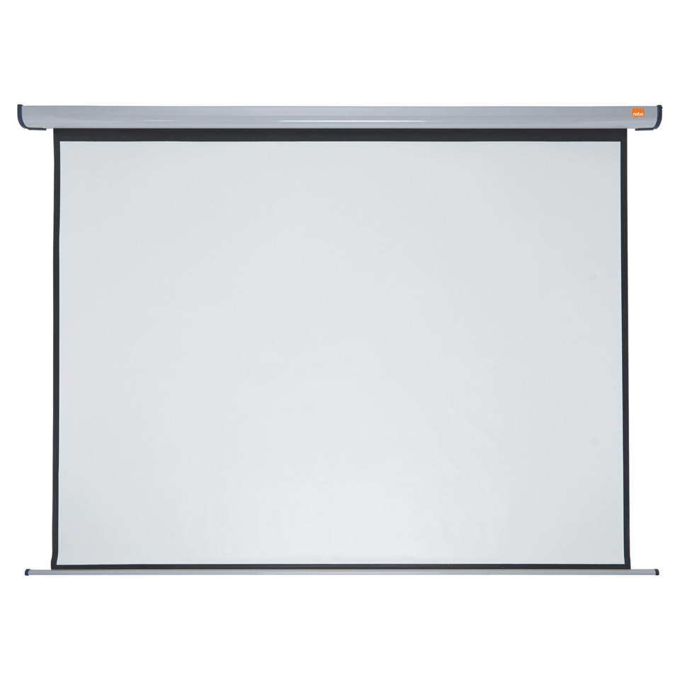Nobo Projektionsleinwand Elektrisch. Für die Wand- oder Deckenmontage. Ausgezeichnete Sichtbarkeit auf allen Plätzen. Geeignet für alle Projektionsarten. Mit aufrollbarer Projektionsfläche, stufenlos höhenverstellbar. Eine Wandabstandhalterung zur Winkeleinstellung für eine verzerrungsfreie Bilddarstellung beim Gebrauch von Overhead-Projektoren wird empfohlen. Neigungswinkel bis 50°. Matt-weisses Leinwandtuch mit schwarzer, 30 mm breiter Bildumrandung zur verbesserten Kontrastdarstellung. Inklusive Fernbedienung mit einer Reichweite bis zu 10 m. Leuchtdichtefaktor: 1,1. Um die Projektionsleinwand an Wand oder Decke zu befestigen, verwenden Sie bitte die Artikelnummer 1902398. Metallgehäuse. Gewicht: 22 kg. Projektionsfläche: 3000 x 2250 mm. 3 Jahr Garantie. Format: 3235 x 2500 x 97 mm.