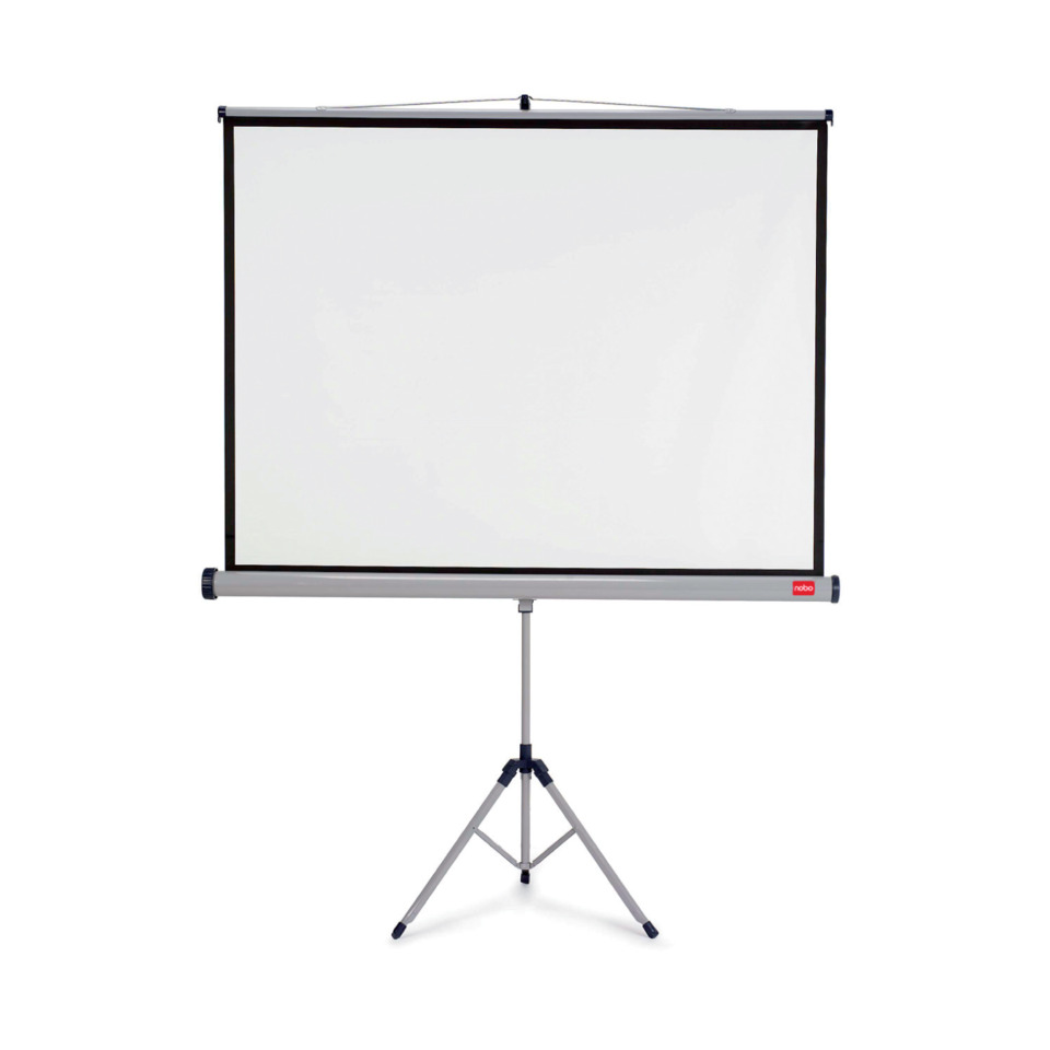 Nobo Projektionsleinwand mit Dreibeinstativ. 4:3 Multimedia-Format. Geeignet für alle Projektionsarten (OHP, Dia, Video und LCD). Zusammenfaltbares Dreibeinstativ, stand- und rutschfest. Stufenlos höhenverstellbar. Mit aufrollbarer Projektionsfläche. Mit integriertem Keystone-Bügel zum Anwinkeln für eine verzerrungsfreie Bilddarstellung beim Gebrauch von Overhead-Projektoren. Neigungswinkel bis 50°. Matt-weisses Leinwandtuch mit schwarzer, 50 mm breiter Bildumrandung zur verbesserten Kontrastdarstellung. Leuchtdichtefaktor: 1,1. Metallgehäuse. Gewicht: 11,1 kg. Projektionsfläche: 2000 x 1513 mm. Format: 2215 x 1610 x 175 mm.