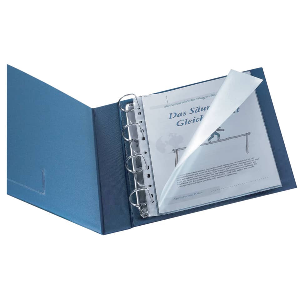 Aus PP-Folie, oben und links offen, mit Lochrandverstärkung, dokumentenecht, Universallochung.