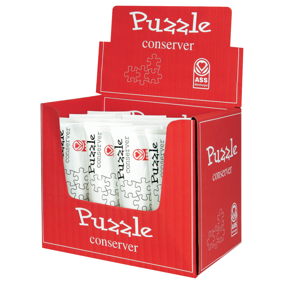 Die schönsten Puzzle-Motive einfach und sicher vor Umwelteinflüssen schützen. So einfach geht´s: Wasserdichte Arbeitsunterlage verwenden Puzzle-Conserver mit dem Schwamm mehrmals auf die Bildseite des Puzzles auftragen, trocknen lassen und fertig ist das konservierte Puzzle.