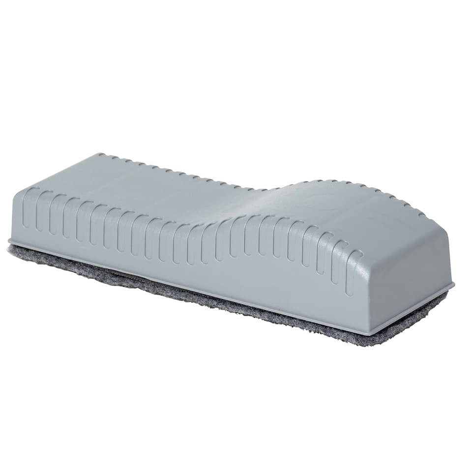 Universal Reinigungsschwamm für das trockene Reinigen von Weißwandtafeln. Praktisches seitliches Magnetband für die einfache Bedienung. Mit auswechselbaren Ersatzfilz. Gewicht: 9,8 g. Größe (BxHxT): 15,5 x 3,7 x 5,7 cm. Farbe: dunkelgrau