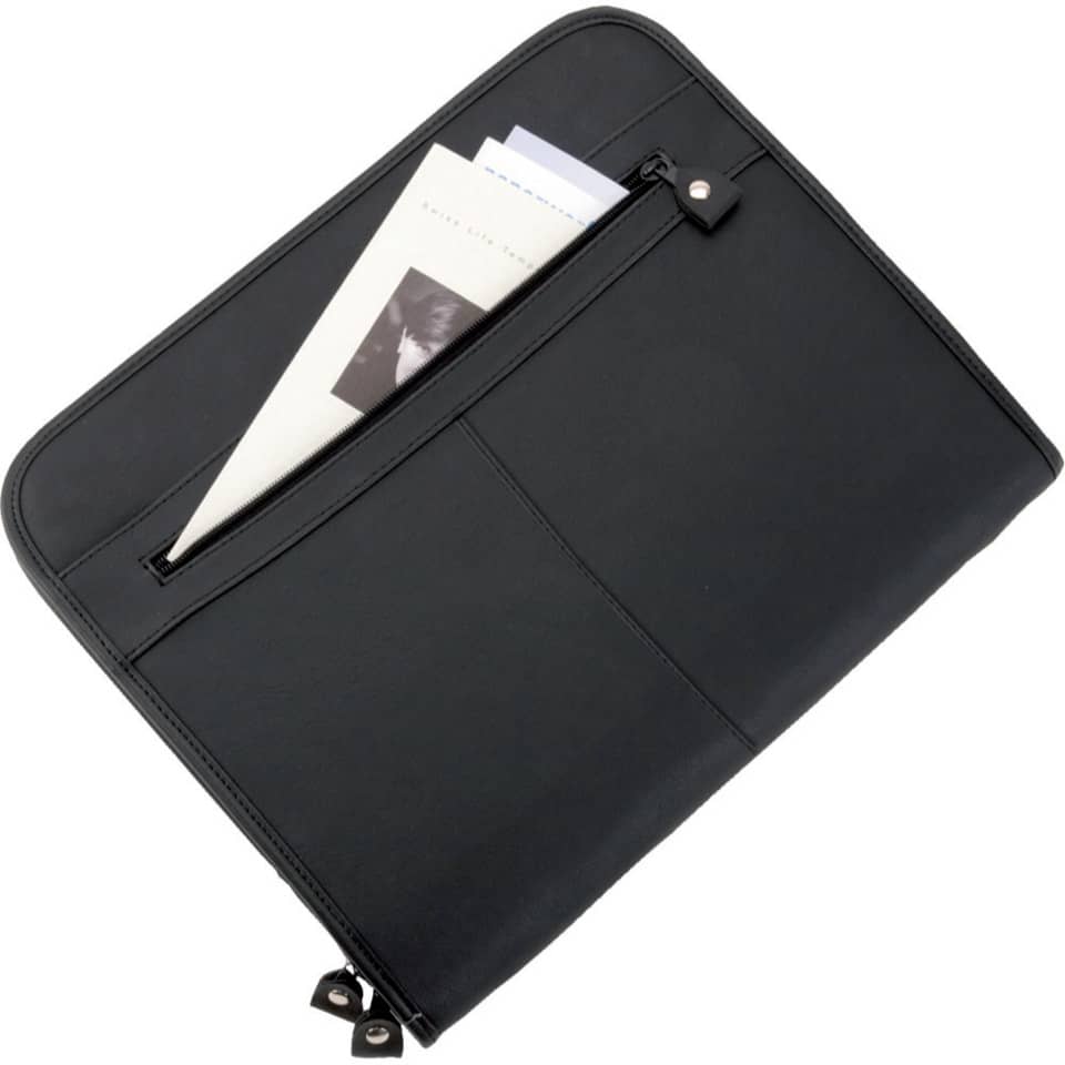 Praktisch und elegant: Die Schreibmappe mit Reißverschluss »Milano« von Alassio® punktet mit zeitlosem Design und einer nützlichen Innenaufteilung. Im DIN-A4 Format bietet sie auf der einen Seite eine Einschubfach für einen A4-Schreibblock – auf der anderen sind ein großes A4 Einsteckfach und ein Reißverschlussfach vorhanden. In weiteren Einsteckfächern hält die Dokumentenmappe Platz für die eigenen oder die Visitenkarten neuer Geschäftskontakte bereit. Darüber können Stifte in den flexiblen Schlaufen jederzeit griffbereit sein. Nützlich für Prospekte und weiteres Werbematerial ist auch das Reißverschlussfach auf der Vorderseite. Gearbeitet aus wertigem FINEtouch Lederimitat sieht die Alassio® Schreibmappe mit Reißverschluss »Milano« edel aus und fühlt sich toll an. Größe: 360 x 50 x 290 mm. Lieferung ohne Inhalt.