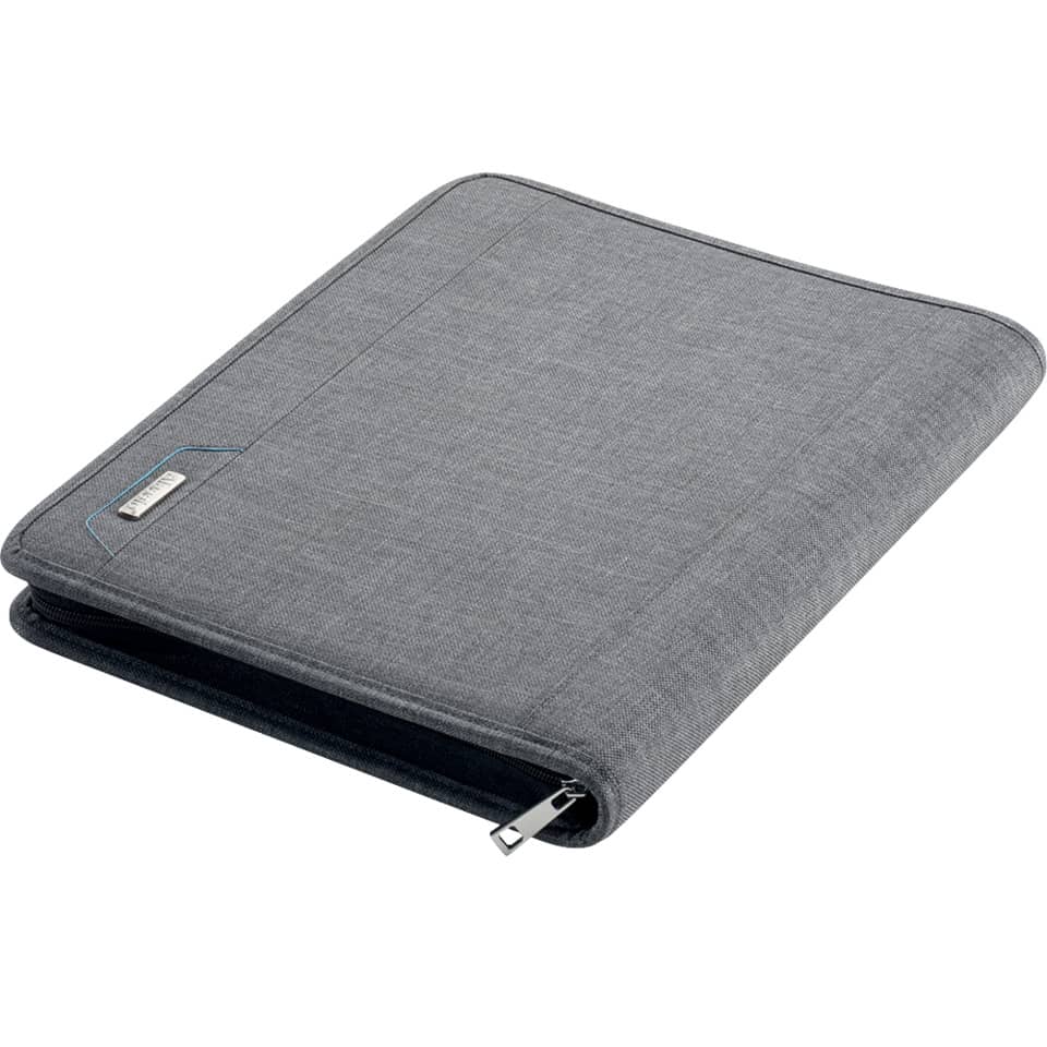 Praktische Ringbuchmappe für A4 mit umlaufendem Reißverschluss. Auf der rechten Innenseite befindet sich ein A4 Einschubfach für Notizblock und eine herausnehmbare 4-Ring-Mechanik 2,5 cm. Die linke Innenseite besteht aus einem gepolsterten Tabletfach, sechs Kredit- Visitenkartenfächer, zwei SD-Karten Fächer, eine Smartphone Hülle, zwei Stifteschlaufen und einem Multifunktionsfach. Lieferung mit Notizblock, ohne Schreibgeräte. Außengröße: 36,0 x 28,5 x 5,0 cm. Werkstoff: Polyester. Farbe: grau.