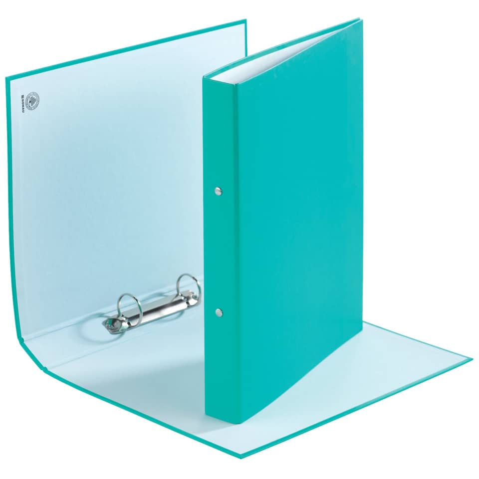 Ringmappe mit Polypropylen (PP)-Bezug strapazierfähig und leicht abwischbar. Papier-Innenspielgel lichtgrau. Passend für Klarsichthüllen und Register. 2 Ringe mit 30 mm Ringinnendurchmesser. Format: A4. Farbe: türkis