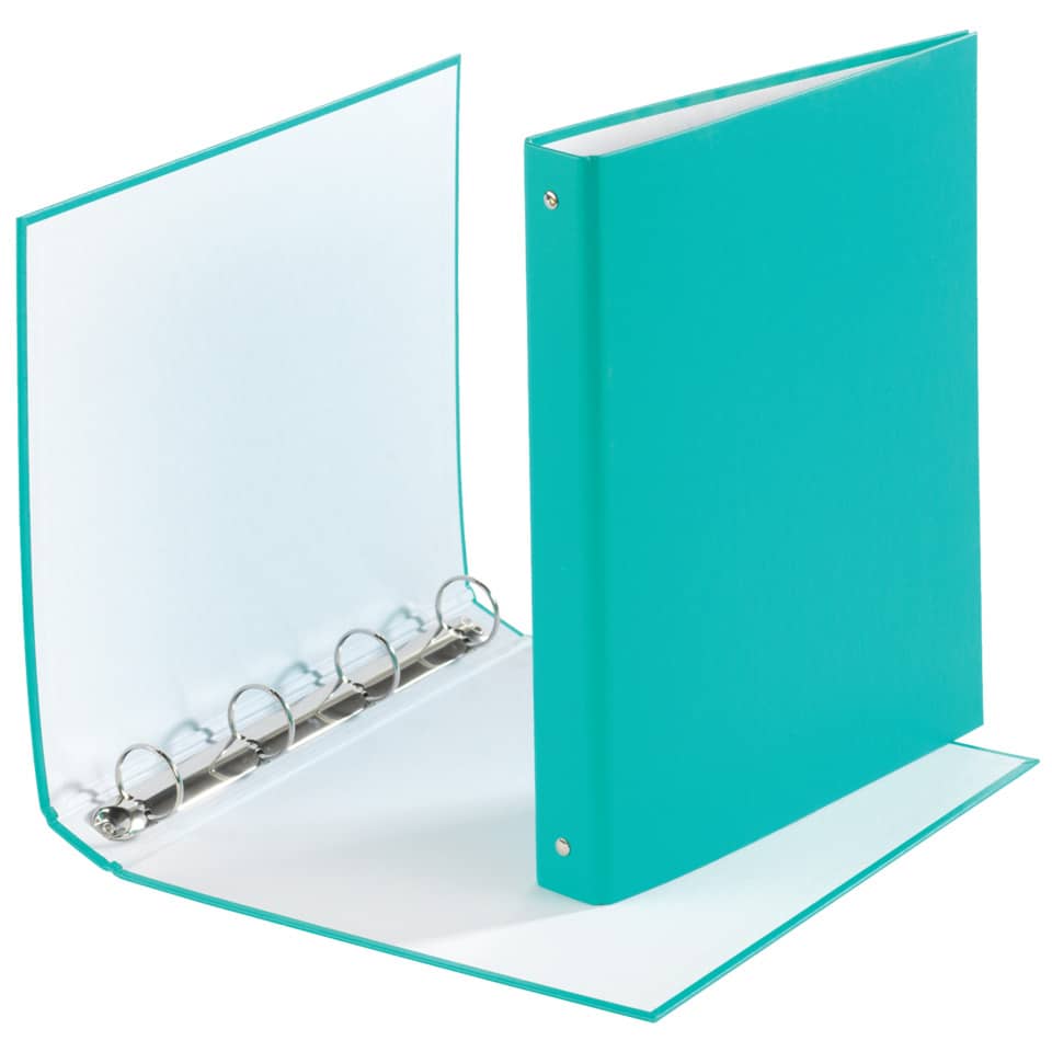 Ringmappe mit Polypropylen (PP)-Bezug strapazierfähig und leicht abwischbar. Papier-Innenspielgel lichtgrau. Passend für Klarsichthüllen und Register. 4 Ringe mit 30 mm Ringinnendurchmesser. Format: A4. Farbe: türkis.