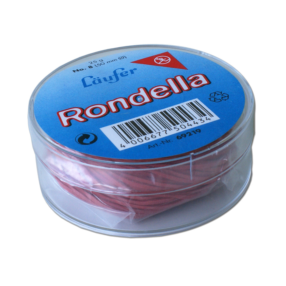 Läufer RONDELLA Gummiringe in der Dose – 25 g, rot. Durchmesser 50mm – Länge 164mm. Naturkautschuk – dehnfähig, spannkräftig und haltbar – häufig wieder verwendbar und damit umweltfreundlich. Inhalt: 25 g