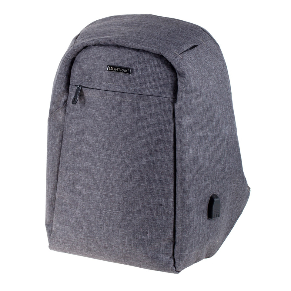 Rucksack SAFEPAK. Sicherheitsfach auf der Rückseite für Geldbörse, Schlüssel und sonstige Wertgegenstände, integrierter USB Ladeport, Trolleyband, gepolsterter Rücken, seitliches Netzfach, Reißverschlussfach auf dem Schultergurt, Reißverschlusstasche vorne, Geräumiges Hauptfach mit verdecktem Reißverschluss im Rücken, gepolsterte Fächer für Laptop und Tablet, drei gepolsterte Einsteckfächer und Reißverschlussfach innen. Art des Verschlusses: Reißverschluss. Größe (B x H x T): 310 x 450 x 150 mm. Material: 600D Polyester. Farbe: grau.