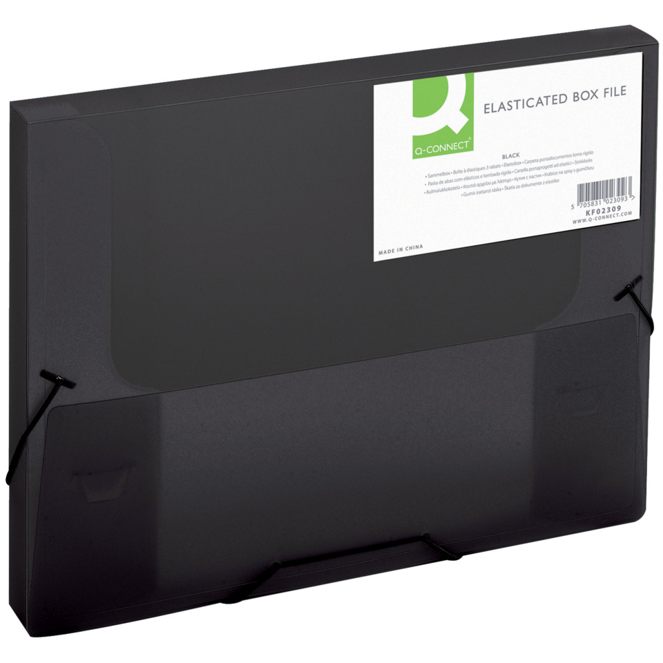 Sammelbox aus Polypropylen (PP). Für ca. 250 Blatt DIN A4 (80g/qm). Rücken 25 mm. Verschluss mit 2 Gummizügen.