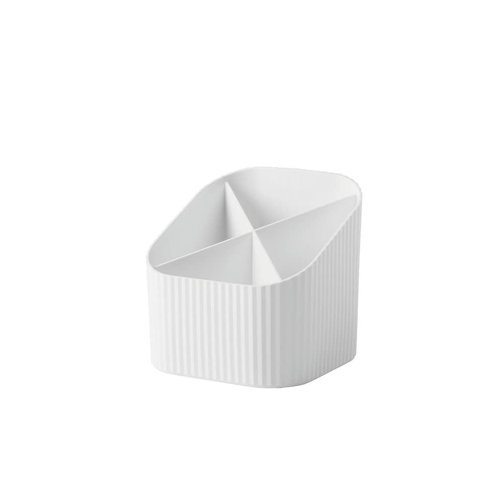 Schreibtischköcher HAN Re-X-LOOP. Nachhaltiger Schreibtischköcher aus qualitativ hochwertigem, recyceltem Öko-Kunststoff, im formschönen Design sorgt für Ordnung auf dem Schreibtisch. Die 4 unterschiedlich hohen Fächer bieten viel Platz für Stifte, Pinsel und viele weitere Utensilien. Ob für das Büro oder Zuhause. Der HAN Re-X-LOOP ist unempfindlich, stabil und langlebig. Ausgezeichnet mit dem Designpreis „Produkt des Jahres“. Der Schreibtischköcher HAN Re-X-LOOP ist umweltfreundlich und hilft somit wertvolle Ressourcen zu sparen. Made in Germany. Außenmaße (B x T x H): 111 x 111 x 105 mm. Material: 100% PCR-Kunststoff Rezyklat mit Blauem Engel (PP). Farbe: weiß.