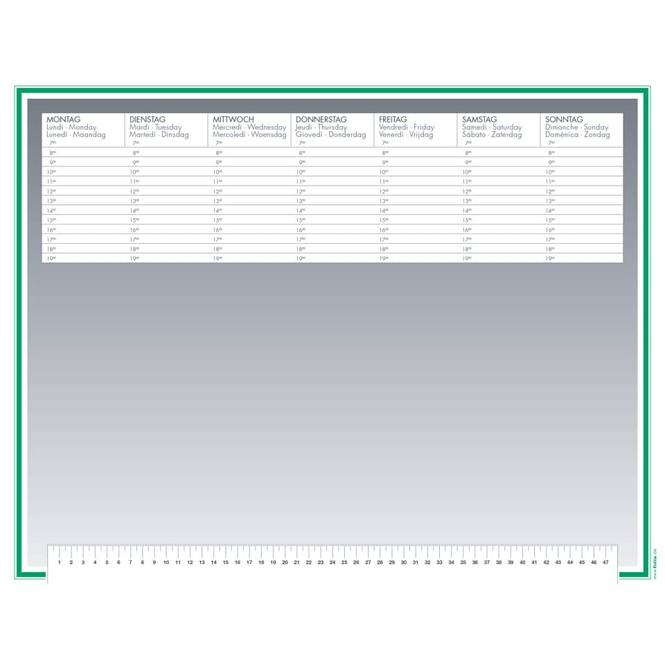 Die Folia Schreibunterlage verfügt über eine übersichtliche Wocheneinteilung und ein funktionellen Design.