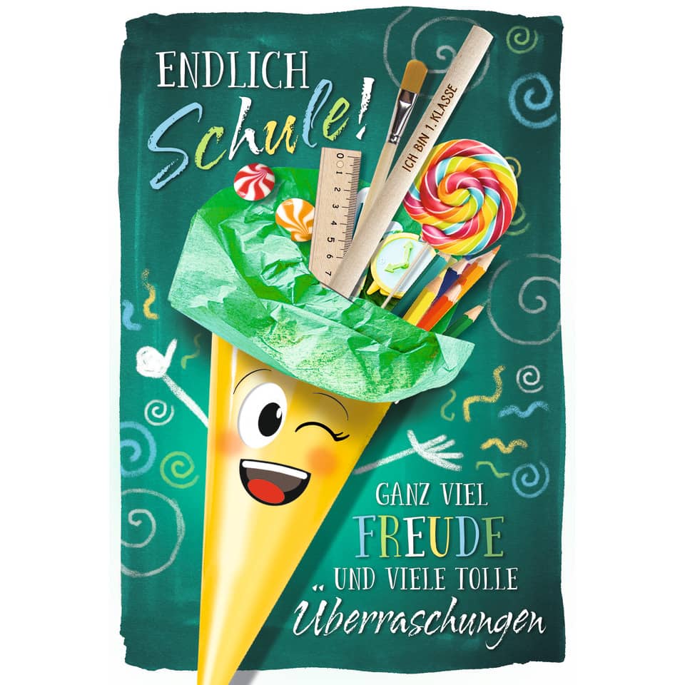 Startklar! Diese fröhlichen Karten garantieren Ihrem Nachwuchs einen erfolgreichen Schulanfang. Mit einer schönen Schulanfangskarte kann man auch von Ferne die besten Wünsche zum Schulstart übermitteln. Oder zur Schultüte dazu… Damit bleiben die guten Wünsche länger lebendig. Hochwertige Ereigniskarte aus Karton, inklusive Umschläge.
