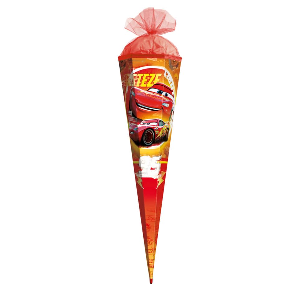 Der coole Rennwagen Lightning McQueen ist Mittelpunkt dieser Schultüte. Das rotes NASCAR-Auto mit tollen grafischen Elementen umgeben, thematisiert die aufregende Welt der Disney Cars-Filme. Die Zuckertüte ist 85 cm groß, eckig und mit rotem Tüll verschlossen. Die Rot(h)e-Spitze verleiht der Schultüte die benötigte Stabilität. Der Folieneffekt verleiht der Schultüte einen glänzenden und auffälligen Look, der sicherlich alle Blicke auf sich ziehen wird. Ein Muss für alle kleinen Rennfahrer.