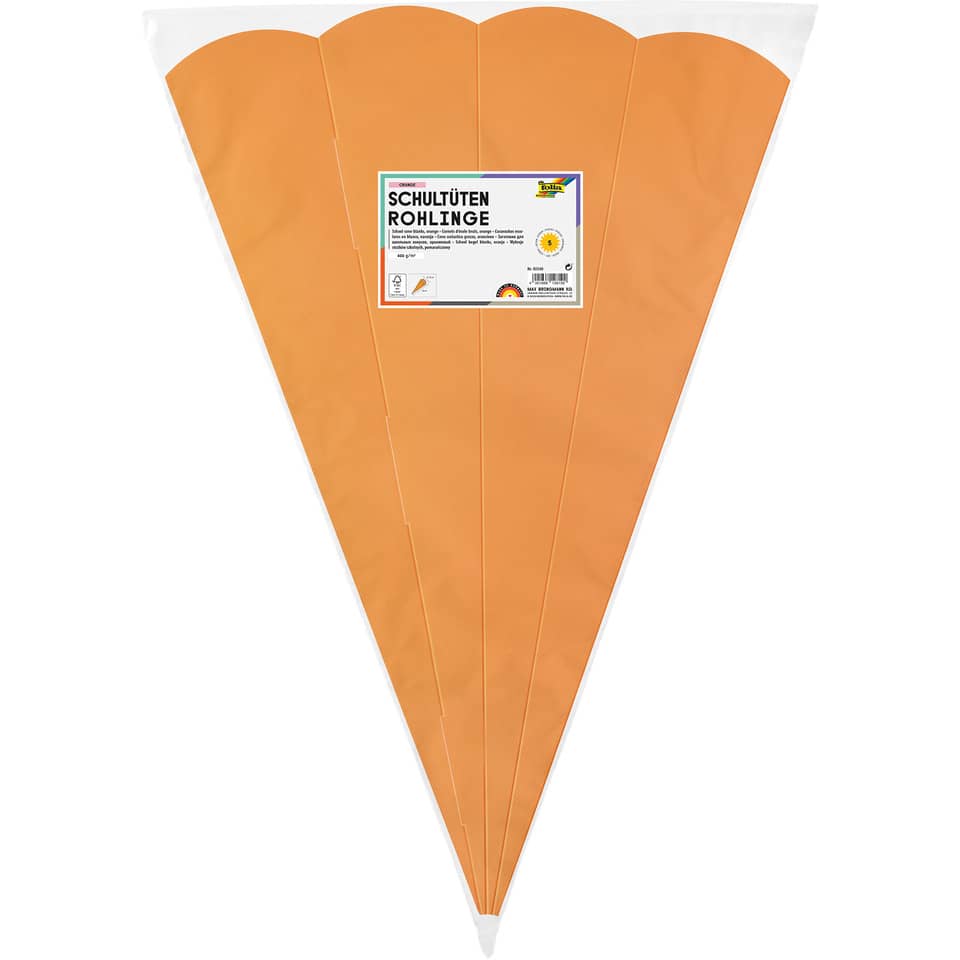 Folia Schultüten-Zuschnitt, 6-eckig, 680 mm, einfarbig. Aus 400 g/qm starkem Karton, Lieferung flach. Packungsinhalt: 5 Stück.