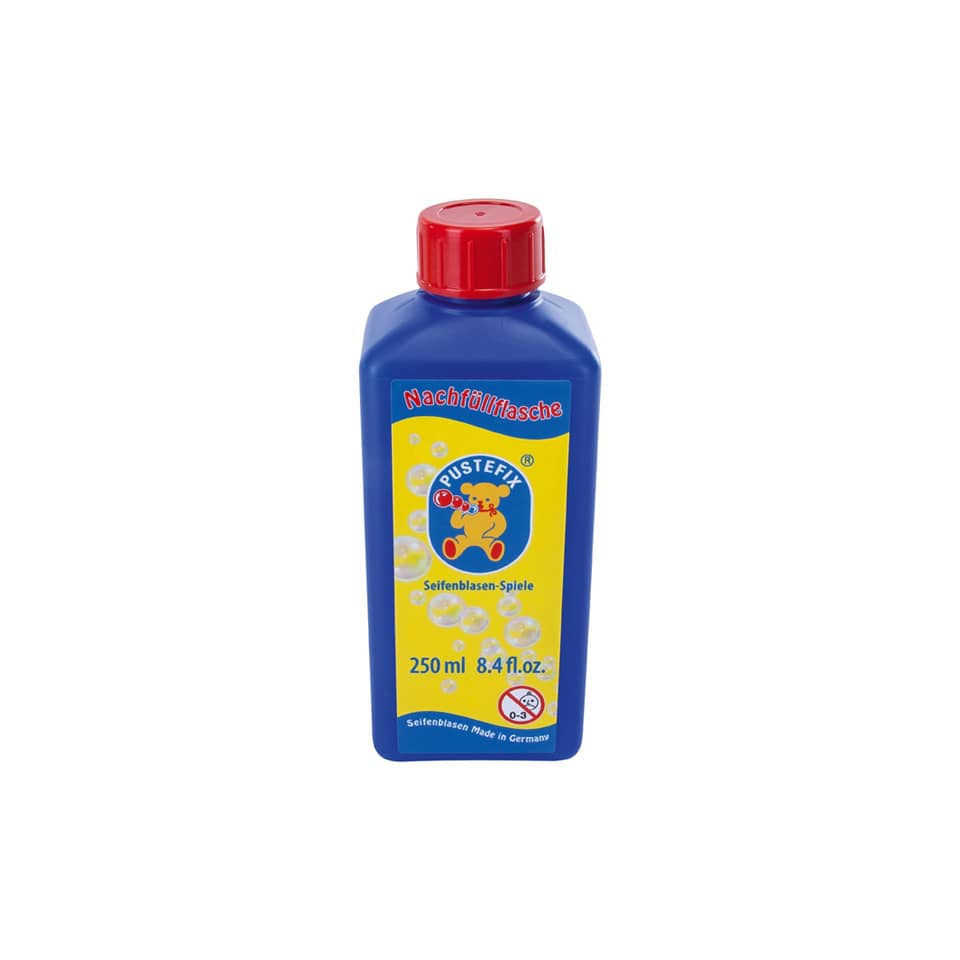 Kein erfolgloses Panschen mit Spülmitteln oder tausenderlei Zutaten. Für dauerhafte, sichere Spielfreude zur Schonung von Umwelt gibt es für alle PUSTEFIX Spiele die original Flüssigkeit zum Nachfüllen.
