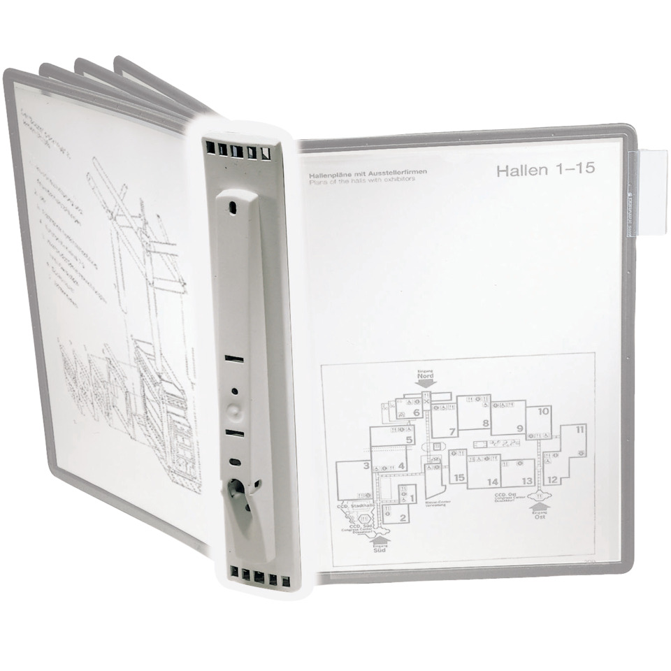 DURABLE Sichttafelsystem SHERPA® WALL MODULE 5, grau. Tafelträger für 5 SHERPA® Sichttafeln im Format A4. Zur einfachen Wandmontage oder zur Kombination mit Tischstativ Art.-Nr.: 5678. Tafeln sind nicht im Lieferumfang enthalten. 57 x 338 mm