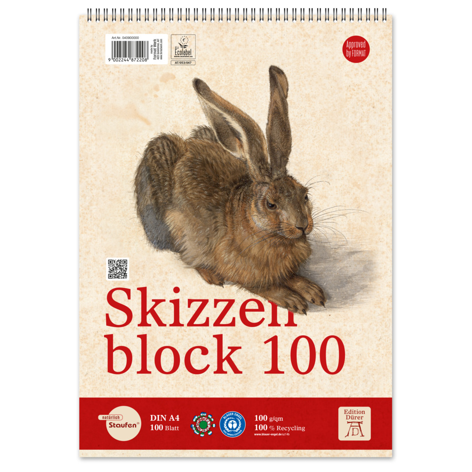 A4 100 Blatt 100g Skizzenpapierblock am Kopf spiralisiert mit Mircoperforation aus hochwertigem 100 g/qm Pure Impact Umweltschutzpapier. Zertifiziert mit den Umweltzeichen Blauer Engel und EU Ecolabel. Die anregende Kreativ-Kollektion der Edition DÜRER® erfüllt die höchsten Ansprüche im klassischen Schulunterricht und bei der künstlerischen Entfaltung zu Hause, in der Schule, im Studium, etc.