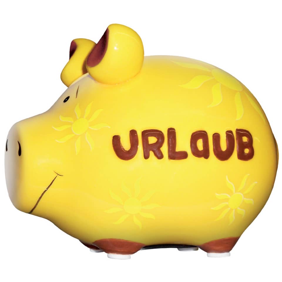 Urlaub und doch kein Geld zum wegfahren? Mit dem niedlichen Sparschwein macht sparen für den nächsten Urlaub Spaß. Größe ca. 12,5 x 9,0 x 9,5 cm. Material: Keramik mit Gumminoppen auf der Unterseite und an den Füßen kleine Stoffpads.