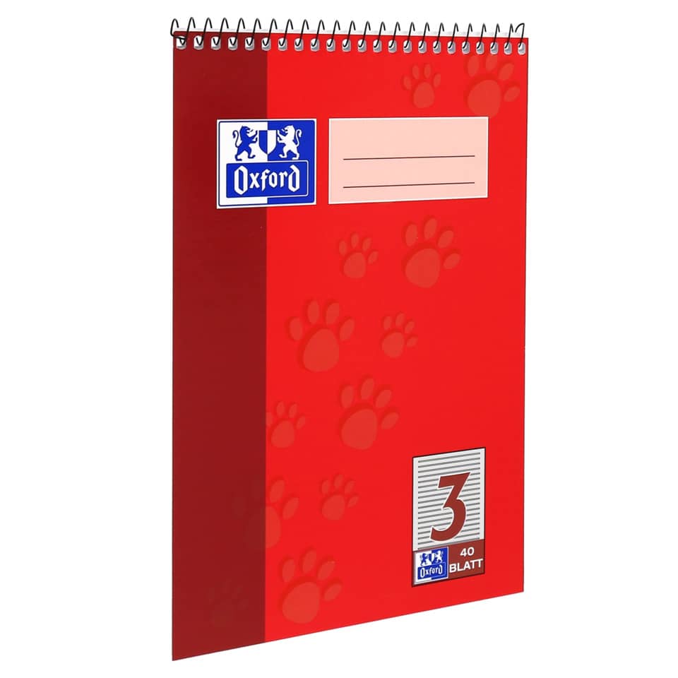 Schulblock. Bindung (Art): Kopfspirale. Perforiert. Optik Paper 90 g/qm. Format: A5. Lineatur: 3 – 3. Schuljahr, farbig hinterlegt. Blatt 40.