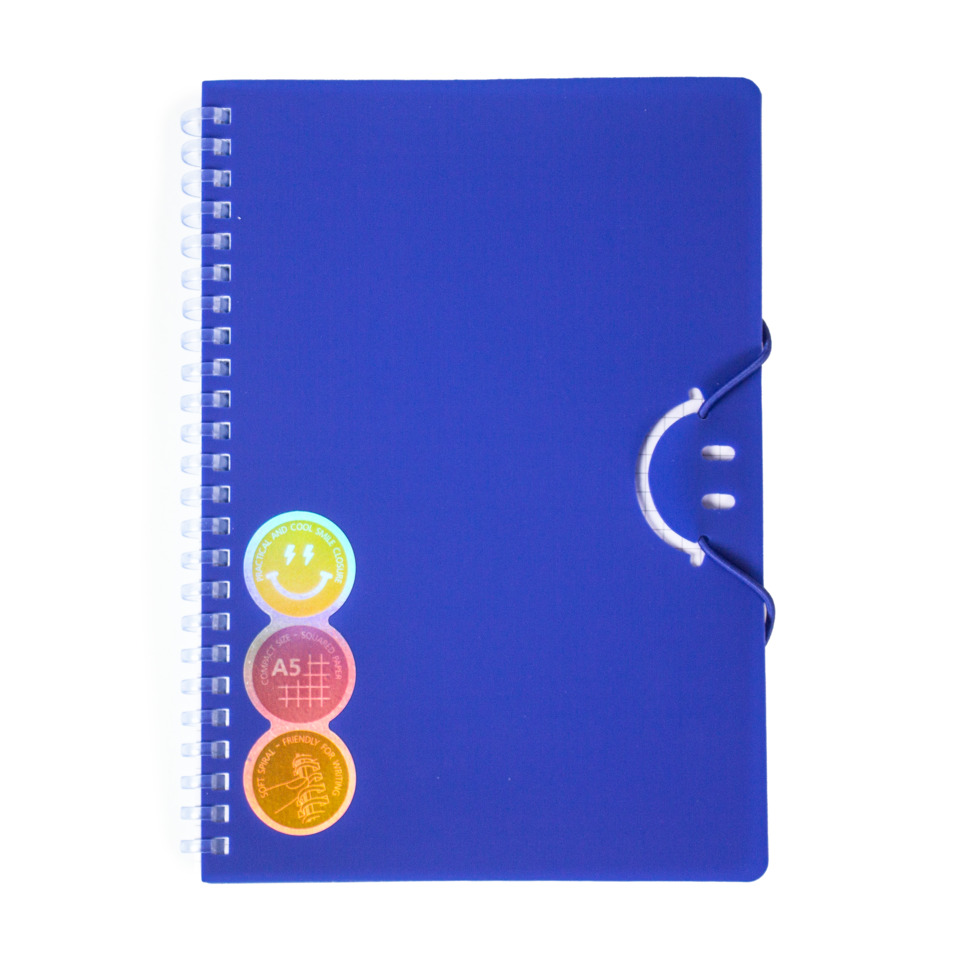 Spiralnotizbuch Smile, mit Soft-Spirale, stabilem PP Einband und Gummiband-Verschluss, Format A5, 160 Seiten, 80 Blätter, kariert 70g/m²