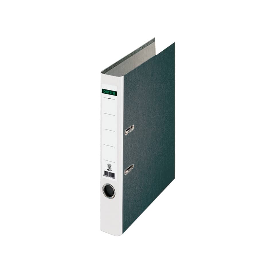 Ordner Standard mit Farbrücken, mit Hebelmechnik. Mit Schlitzen, mit Griffloch, mit Kantenschutz, mit aufgeklebtem Rückenschild. Material: Einband aus Pappe (RC), mit Wolkenmarmor-Papier kaschiert, farbiger Papierrücken mit wasserlöslichem Lack beschichtet. Format: für A4, 317 x 285 mm, Rückenbreite: 52 mm. Farbe: weiss.