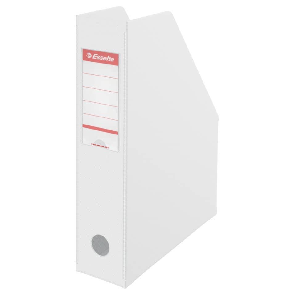 Stehsammler, A4, mit Sichttasche und auswechselbarem Rückenschild, mit Griffloch, faltbar. Material: stabile Pappe mit PVC-umschweißt. Format: 70 x 315 x 234 mm. Farbe: weiß.