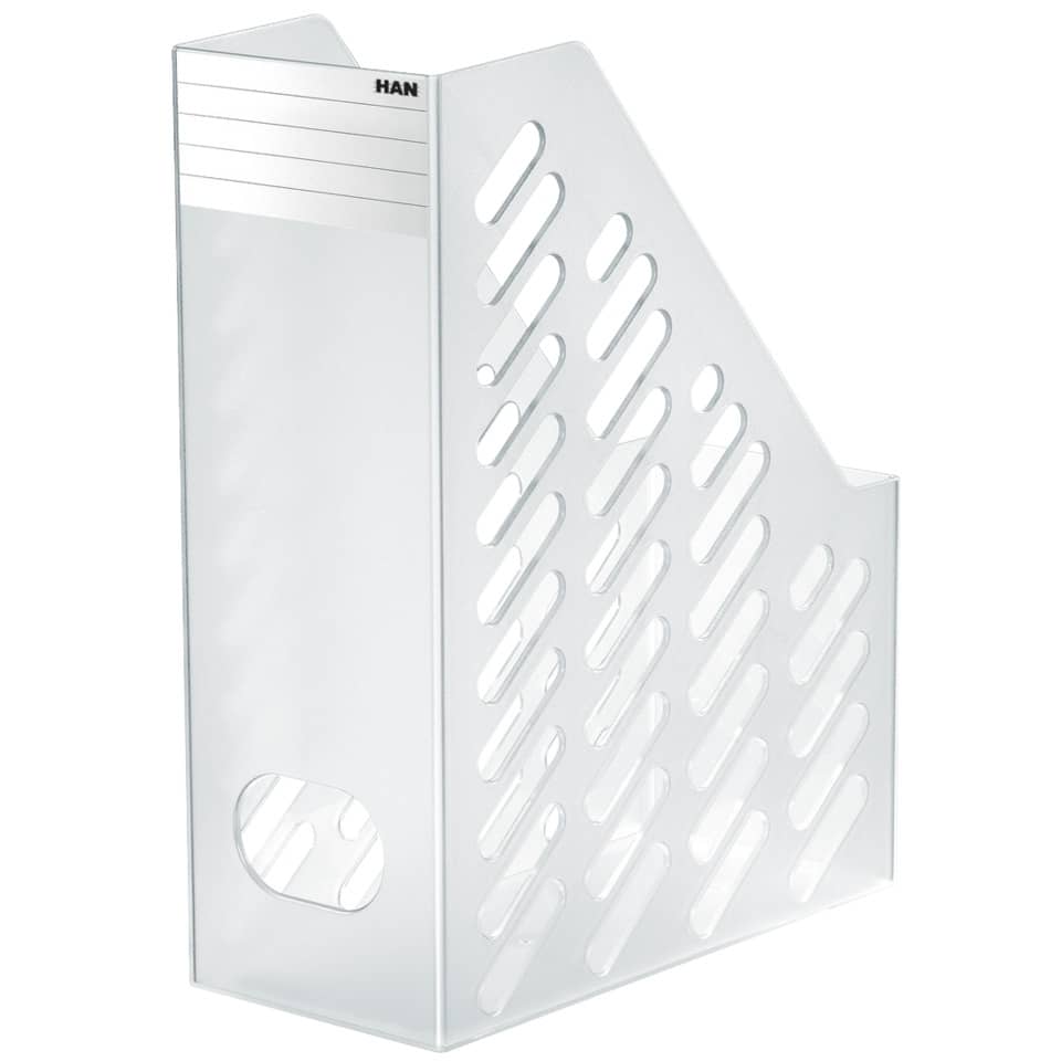 Stehsammler BRILLANT XXL für Formate bis DIN A4/C4. Groß, größer, XXL. Klassisch und stilvoll in transluzenter Optik. Hochwertig, stabil und standsicher durch praktische 115 mm Außenbreite. Nichts kippt mehr, nichts liegt herum, alles ist schön sortiert.