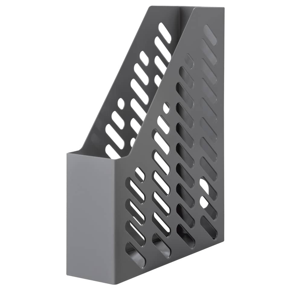 Stehsammler KLASSIK für Formate bis DIN A4/C4. Klassisches, zeitgemäßes Design. Nichts kippt mehr, nichts liegt herum, alles ist schön sortiert. Extra hohe Vorderseite um Dokumente sicher zu halten. Mit seitlichem Raster, das Einsicht auf Kataloge, Prospekte, Zeitschriften, etc. erlaubt. Mit praktischem Griffloch im Rückenteil für eine schnelle Entnahme. Platz für ein Rückenschild, das im 8er Set unter der Art.-Nr. 94100 nachbestellt werden kann. Zur Aufbewahrung von Unterlagen bis DIN A4/C4 geeignet. Fassungsvermögen: 70 mm. Made in Germany. Außenmaße (B x T x H): 76 x 246 x 315 mm. Höhe vorne: 148 mm. Material: hochwertiger Kunststoff, Polystyrol (PS). Farbe: dunkelgrau.