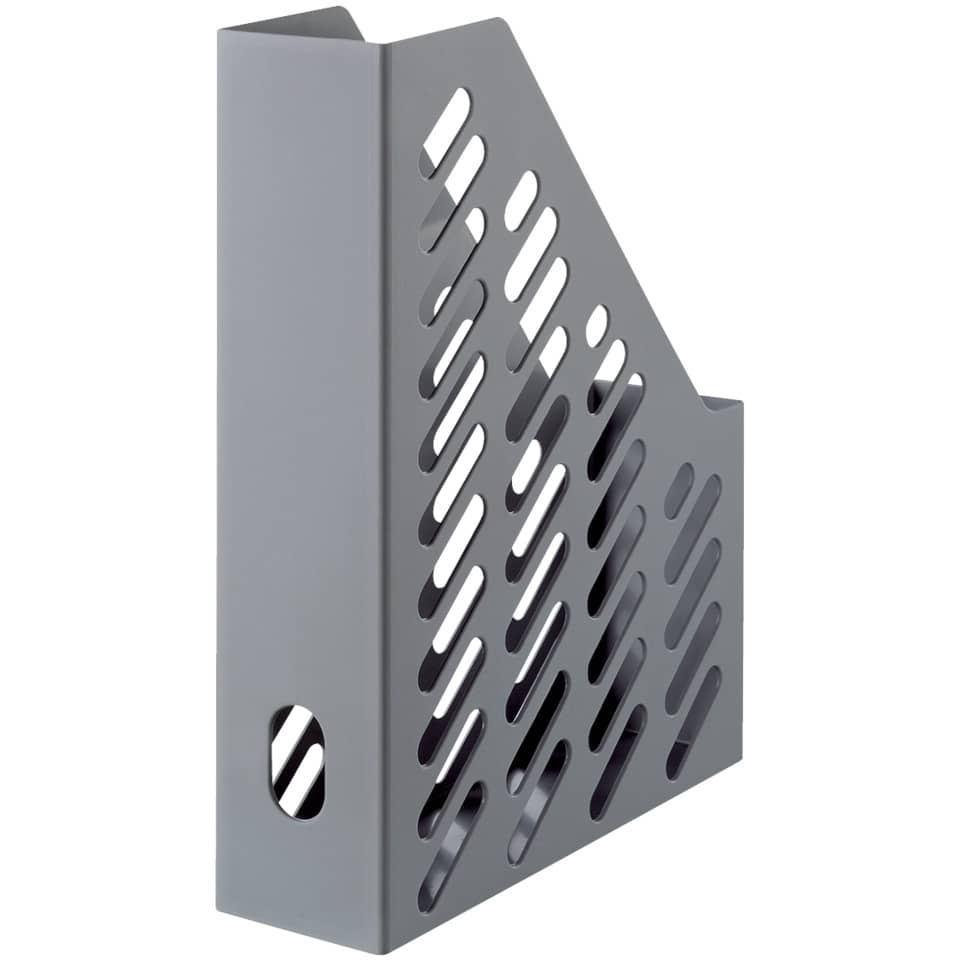 Stehsammler KLASSIK KARMA bis DIN A4/C4. Der umweltfreundliche Stehsammler. Nichts kippt mehr, nichts liegt herum, alles ist schön sortiert. Für das HAN KARMA-Programm werden Post Consumer Materialien (bereits benutzte Kunststoffprodukte) verarbeitet. Ausgezeichnet mit dem Umweltzertifikat: DER BLAUE ENGEL. Extra hohe Vorderseite um Dokumente sicher zu halten. Mit seitlichem Raster, das Einsicht auf Kataloge, Prospekte, Zeitschriften, etc. erlaubt. Mit praktischem Griffloch im Rückenteil für eine schnelle Entnahme. Zur Aufbewahrung von Unterlagen bis DIN A4/C4 geeignet. Fassungsvermögen: 70 mm. Made in Germany. Außenmaße (B x T x H): 76 x 246 x 315 mm. Höhe vorne: 148 mm. Material: 80-100% Recyclingmaterial. Farbe: öko-grau.