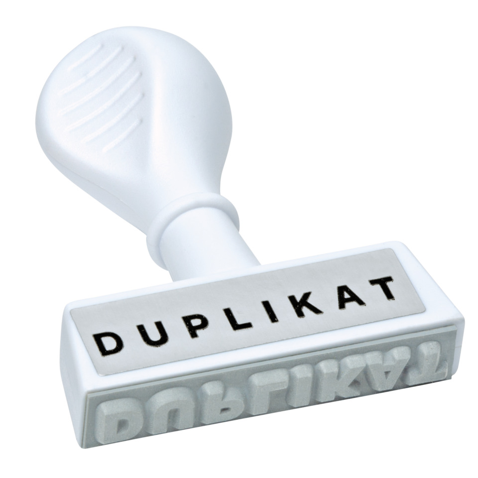 WEDO® Lagertextstempel aus Kunststoff, Text: DUPLIKAT. Mit ergonomischen Griff, Abdruckbreite ca. 45 mm.