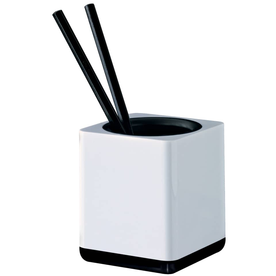 Stifteköcher i-Line – ein elegantes, formschönes Accessoire mit großem Volumen. In diesem Stifteköcher finden Ihre Stifte und Büroutensilien schnell einen Platz und sind immer griffbereit. Die hochglänzende Optik und klare Linienführung setzen moderne Akzente auf jedem Schreibtisch. Kompromisslose Qualität für moderne Bürowelten. Ein echter Blickfang. Hochwertige, stabile und schwere Ausführung. Mit praktischer, stifteschonender Schaumstoffeinlage. Besonders möbelschonend durch einen vollflächigen, rutschfesten Schaumstoffboden. Design und Farbe sind abgestimmt auf alle Produkte der i-Line Serie. Made in Germany. Material: hochwertiger Kunststoff (ABS). Außenmaße: (B x T x H): 79 x 79 x 96 mm. Farbe: weiß-schwarz.