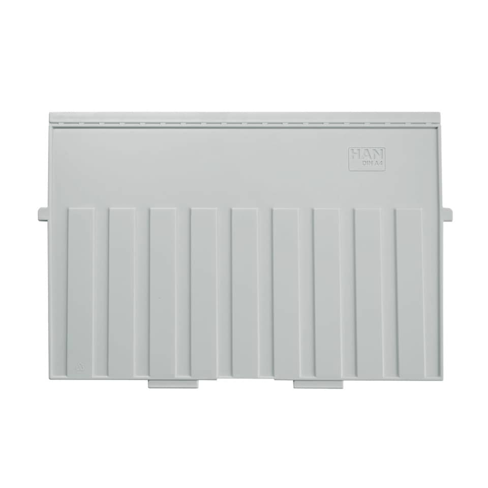 Stützplatte für Karteitröge und -kästen. Werkstoff: Polystyrol (PS). Mit spezieller Rasterung für verschiebbaren Sichtreiter ( Artikel 9001 ). Verwendung für Kartenformat: A4 quer. Farbe: lichtgrau.