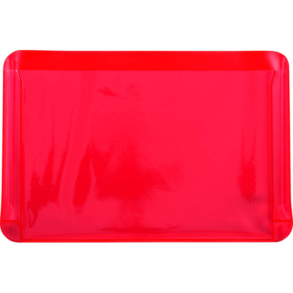Tafelschoner Original Scolaflex · Rückseite aus Plastikfolie in leuchtendem rot · Vorderseite aus kräftiger Klarsichtfolie.